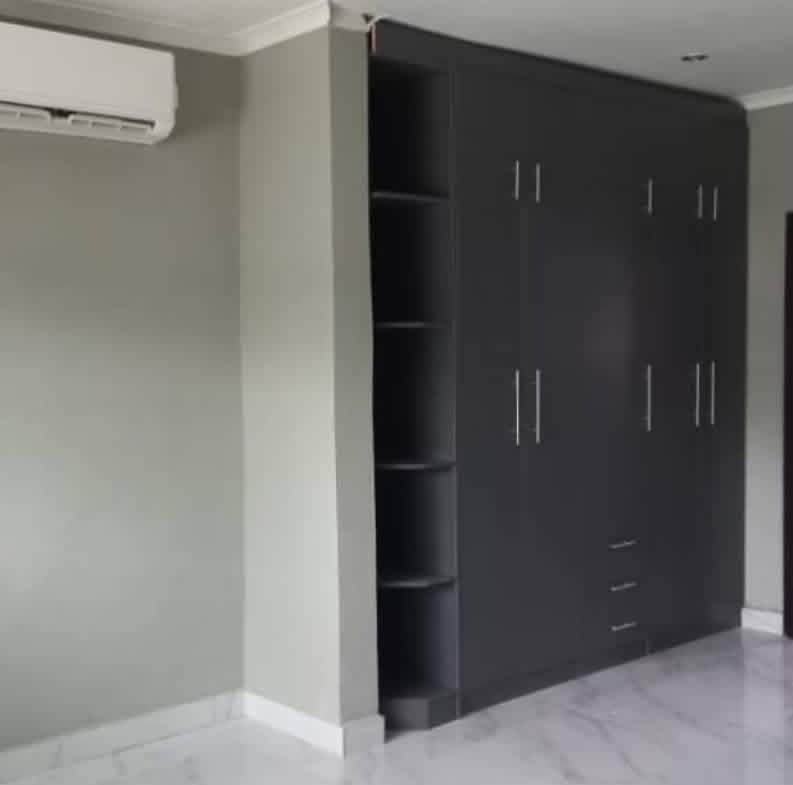 Modern 2-bedroom flat in Meanwood Kwamwena Phase 2, just 30m off the tarmac and 1.9km from Cheers Mall. Features include a self-contained master bedroom, AC, modern kitchen, backup power, paved private yard, electric fence, and both council + borehole water.