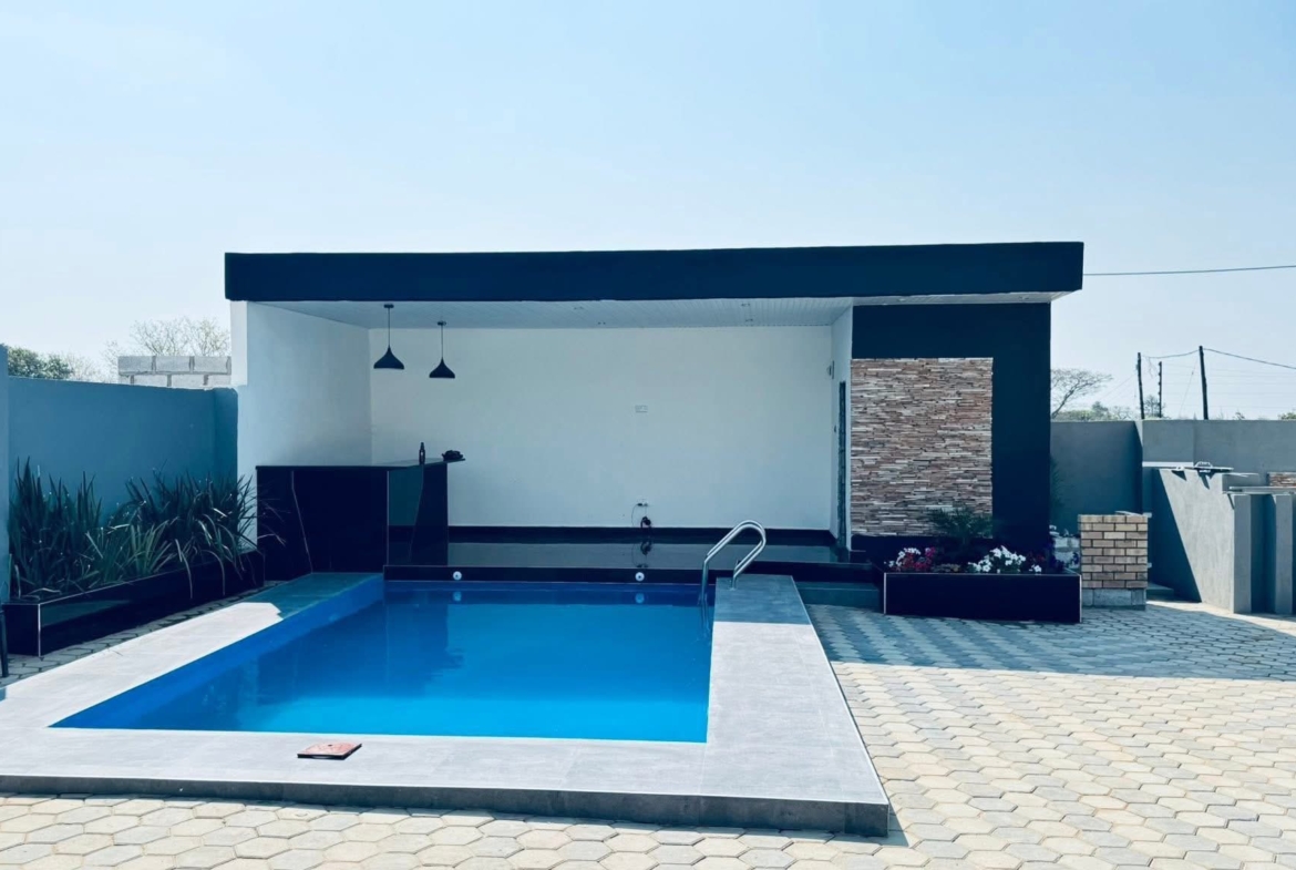 | FOR RENT | K25,000 Ibex Meanwood Lusaka Beautiful 3 bedroom House Newly Built Flat Complex of 3 Flats Features:- ° Master bedroom Self Contained ° Master bedroom with Bathtub & Shower ° Master bedroom with a Balcony ° Master bedroom fitted with powered LED lights ° Main Rooms Air conditioned ° House comes with High large Windows ° Therapeutic High Ceilings ° Separate Tv Room ° Fully fitted kitchen with built in cooker & oven ° Large Living room and Open Space dinning area ° Automated Gate Control System ° Borehole with overhead tank ° Paved Interlocking Driveway ° Pristinely Manicured lawns ° Communal Swimming Pool PRICE K25,000 x 2 months + 1 month Security Deposit Ready for Occupation 9th February 2026,VIEWABLE Proximity to key amenities: Airport, Hospitals, Shopping Malls, Supermarkets, Restaurants and Social Venues. 0974474944